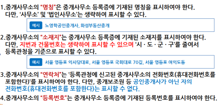 제3조(중개사무소에 관한 표시 · 광고 명시사항)