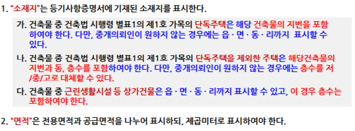 단독주택은 지번을 포함. 의뢰인이 원하지 않으면 표시X