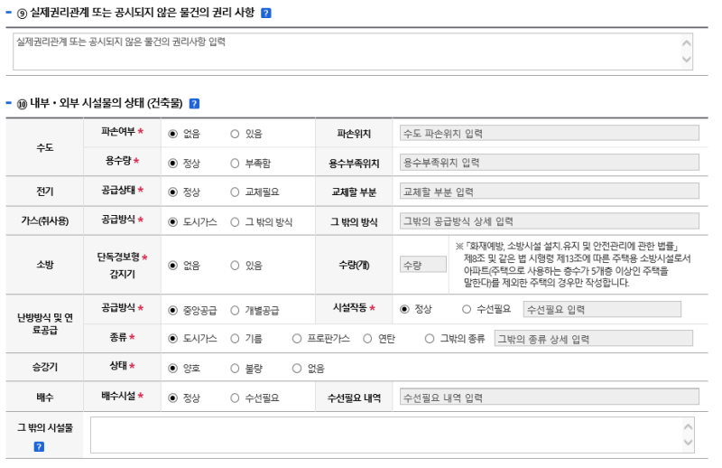 수도~ 그밖의 시설물 : 자세히 작성, 추후에 분쟁 발생시 중요한 부분이 됨