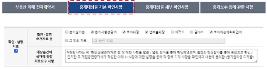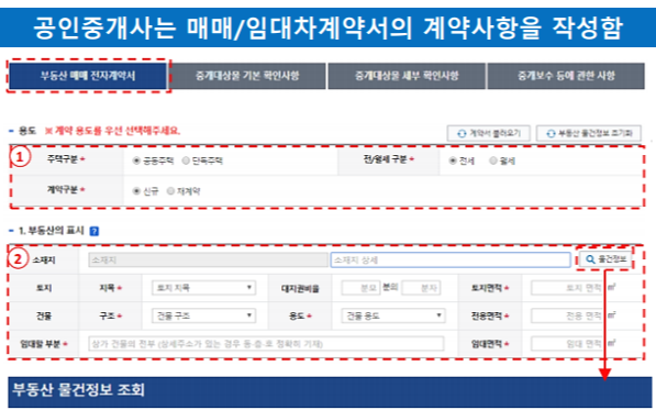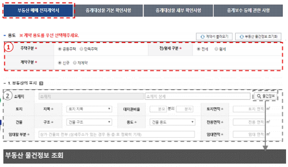 공인중개사는 물건정보 조회를 통해 가져온 정보를 확인한 뒤 나머지 내용을 작성함