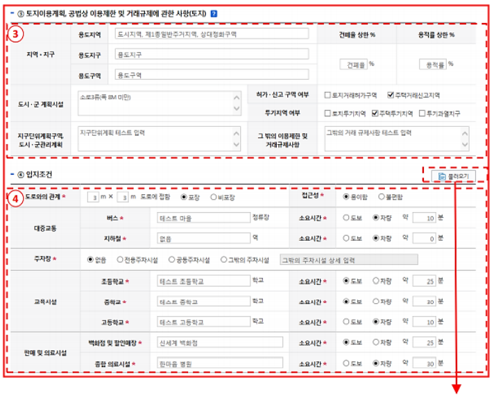 ③ 공인중개사는 대장정보연계로 가져온 데이터 외에 나머지 토지이용계획 상에 내용을 입력함