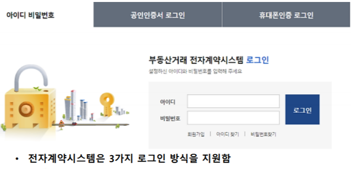 사용자는 부동산거래 전자계약시스템 (https://irts.molit.go.kr) 접속 후 로그인