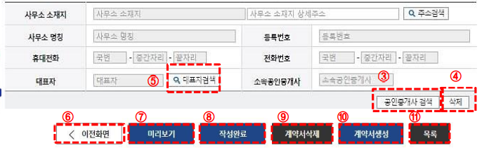 ③ 현재까지 작성한 계약내역을 임시저장 함