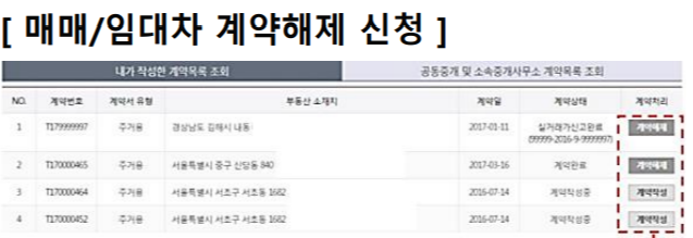 ->해제신청 외 나머지 업무절차는 기존 매매/임대차 계약서와 동일