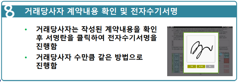 ※ 대면거래의 경우 거래당사자(매도인, 매수인 또는 임대인, 임차인 등)는 별도로 서명을 위한 앱을 설치할 필요가 있습니다.