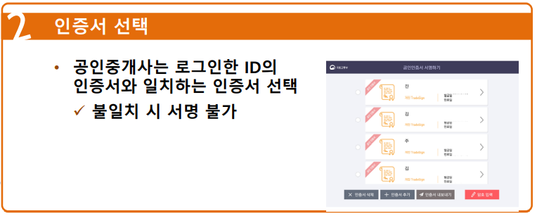 • 범용인증서, 부동산거래(특수목적용) 인증서 외 타인증서는 사용 불가