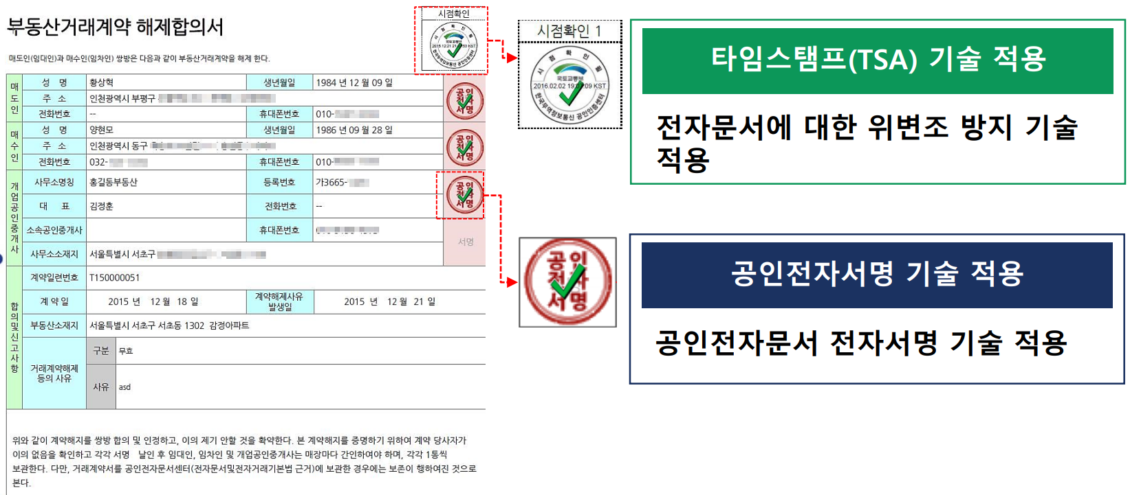 [ 계약해제 합의서 서명내역 확인(당사자 서명 후 계약 해제시) ]