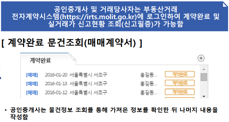 부동산거래를 종이계약서 대신 온라인상 전자방식으로 계약하는 시스템으로 더 편리하고 경제적이며 안전한 거래가 가능합니다. (홈페이지 https://irts.molit.go.kr)