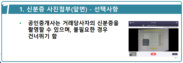 ※(공인중개사법 제25조의2) 개업공인중개사는 중개의뢰인에게 주민등록증 등 신분을 확인할 수 있는 증표 제시 요구할 수 있습니다.
