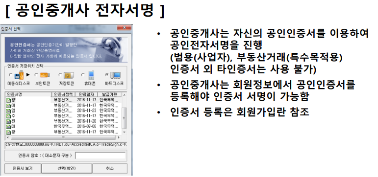 공인중개사 회원이 전자계약을 진행하려면 ‘공인인증서 등록’이 반드시 필요합니다.(단, 공인인증서 등록 없이 회원가입은 가능)