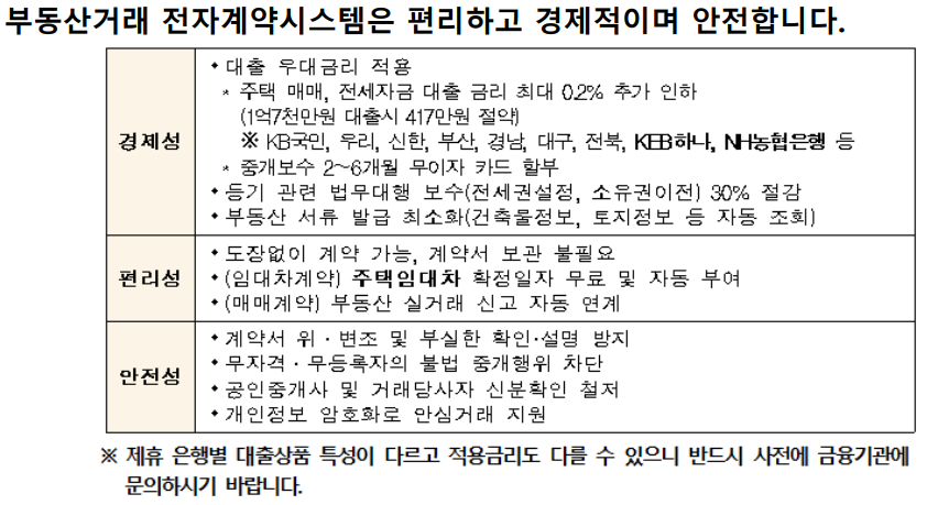 은행에 따라 다르지만, 일부 적용되고 있으니, 자세한 내용은 전자계약시스템 홈페이지 관련내용(‘홈페이지 ‘공지사항‘ → ‘전자계약 시 은행별 주택 및 전세자금 담보대출 금리우대 안내‘ 또는 홈페이지 ‘대출서비스’)을 참조하시거나 전자계약 고객센터 1833-4662에 문의하시기 바랍니다. 다만 제휴 은행별 상품이 다양하므로, 기타 세부사항에 대한 안내는 해당 금융기관과 상담하여 주시기 바랍니다.