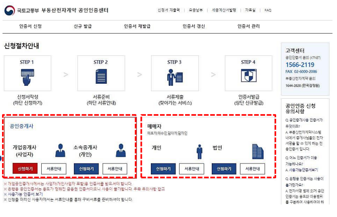 (공인인증서 신청 및 발급 관련 자세한 문의는 “1566-2119”으로 연락 부탁드립니다.)