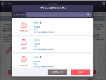 • 매수자는 부동산거래 전자계약시스템에 등록되어 있는 법무대리인을 선택할 수 있음