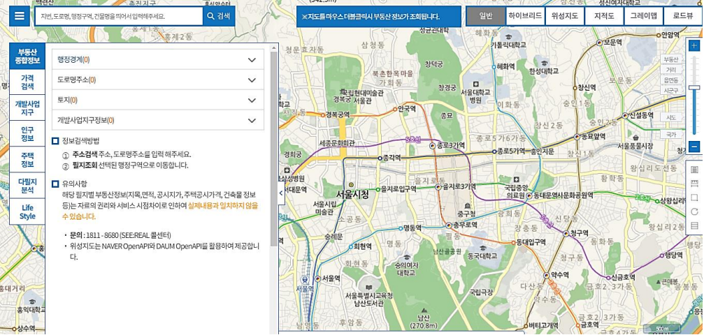 한군에 모여있다 : 씨리얼 (SEE REAL : 구, 온나라부동산 포털)