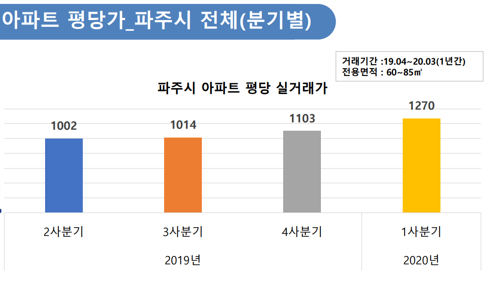분기별로 아파트별 평당 실거래가를 숫자데이터 만들 수 있다. (숫자 데이터 활용해서 직접 제작해야한다. 국토부실거래가에는 데이터만 제공)