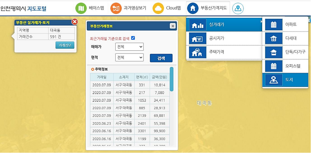 부동산 가격지도 > 실거래가 > 토지