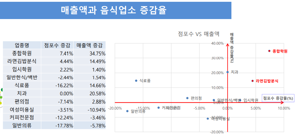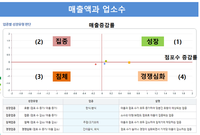 패스트푸드는 잘되고, 커피점은 잘 안된다는것을 알수있다