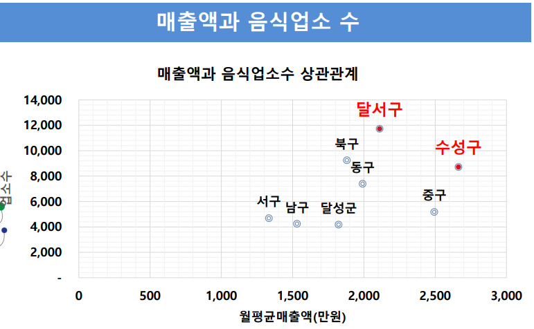달서구, 수성구 매출액이 좋은것을 알 수 있다.
