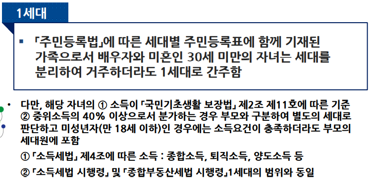 중위소득 40%이상 (경제적 능력이 있는.. 22년 기준 월 소득 77.6만원)으로서 미혼이면서 분가하는 경우 부모와 구분하여 별도의 세대로 판단한다