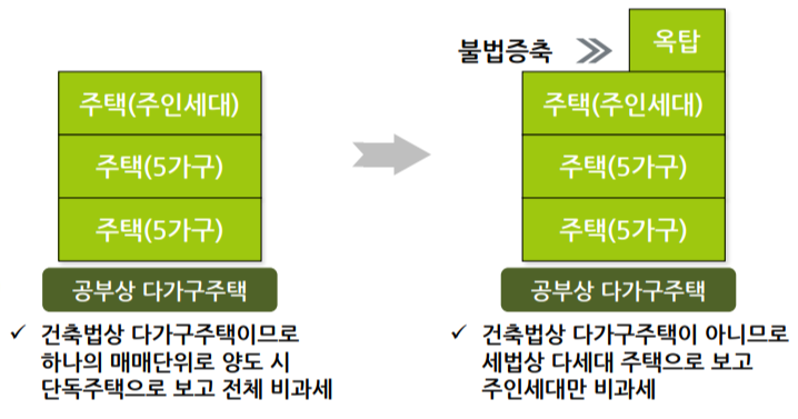 우측 : 만약 옥탑이 하나 더 있으면 주택이 더 많아지므로