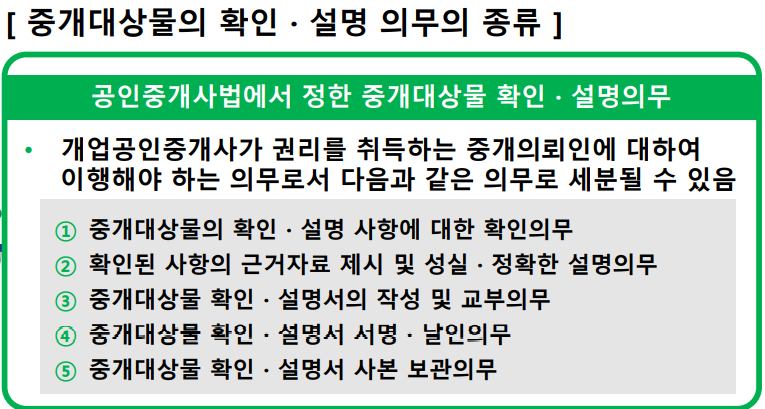 [ 중개대상물의 확인 · 설명 의무의 종류 ]
