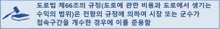 - 시장 또는 군수는 필요하다고 인정할 때에는 전항의 규정에 의한 폭원과 연장을 초과하여 접속구간의 개수를 할 수 있음
