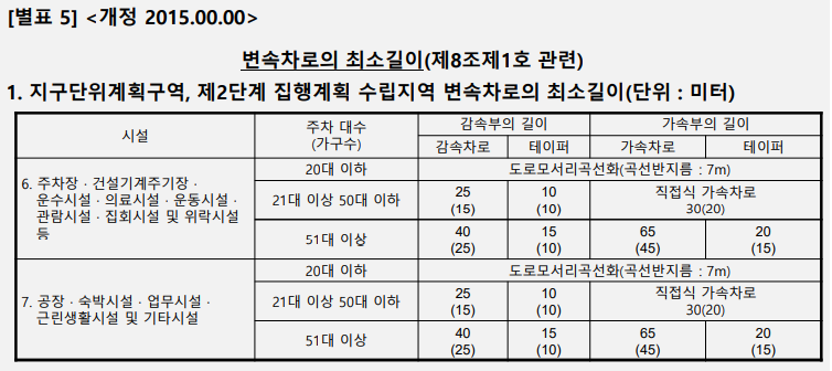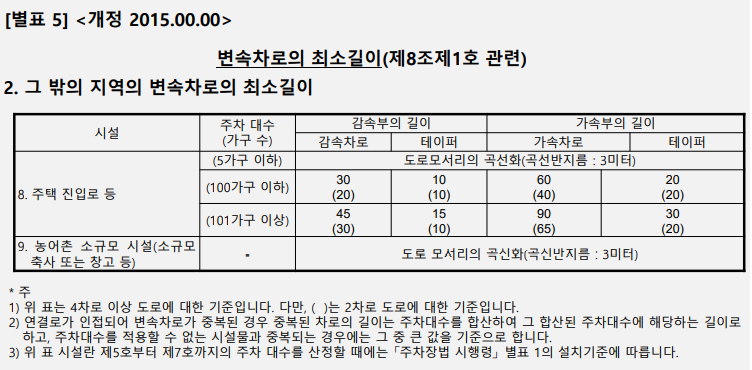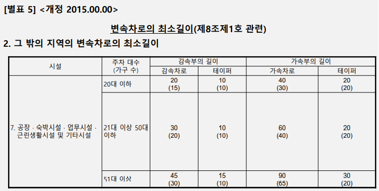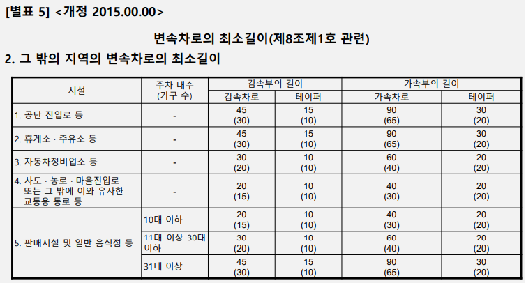 1. "변속차로"라 함은 자동차를 가속시키거나 감속시키기 위하여 설치하는 차로를 말한다.