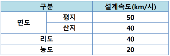 나. 「농어촌도로정비법」 제4조의 규정에 의한 면도(면도) 중 2차로 이상으로 설치된 면도
