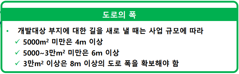⒞ 개발면적에 따른 도로폭 조건 개발대상 부지에 대한 길을 새로 낼 때는 사업 규모에 따라