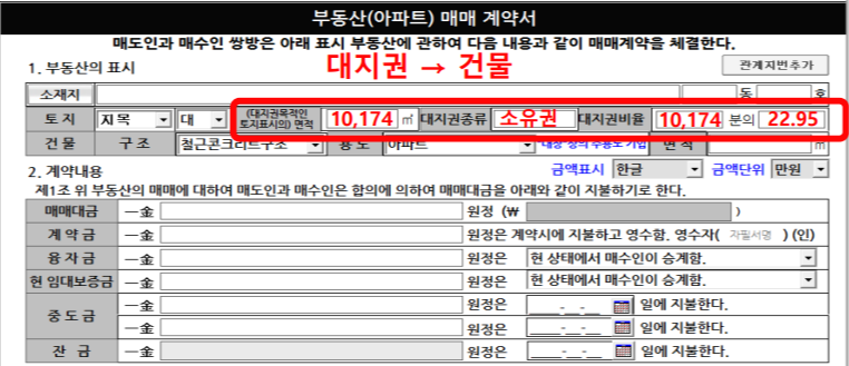 [매매] 면적, 대지권 종류, 대지권 비율 :