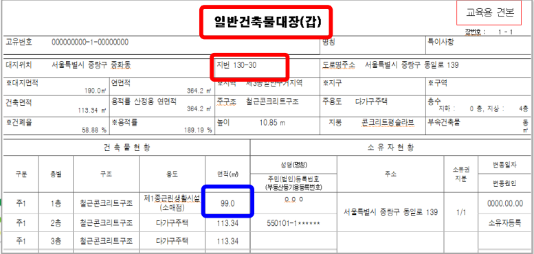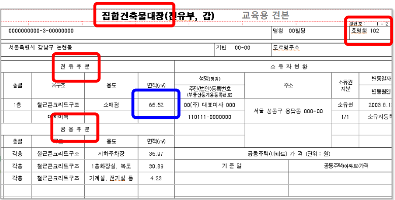 집합건축물은 전유부분 면적이 정확하게 나온다