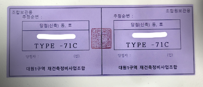 2022년 2월 19일 조합원 동호수 추첨이 있었습니다.