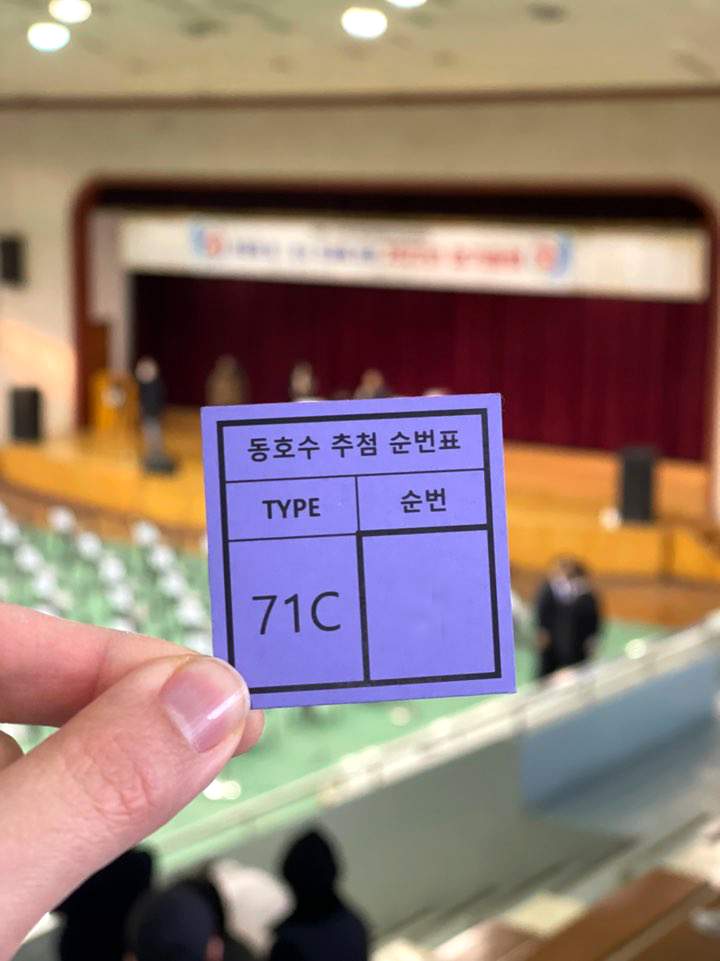 입구에 들어오기 전에, 각 평형 타입별로 추첨 순번을 정하게 됩니다.