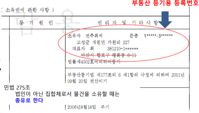 법인이 아닌 집합체로서 물건을 소유할 때는 총유로 한다.