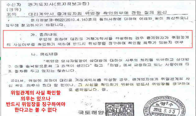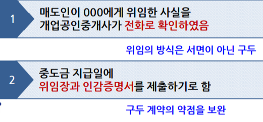 ▪ 임대인 대리 계약 시 위임장 보완 약속