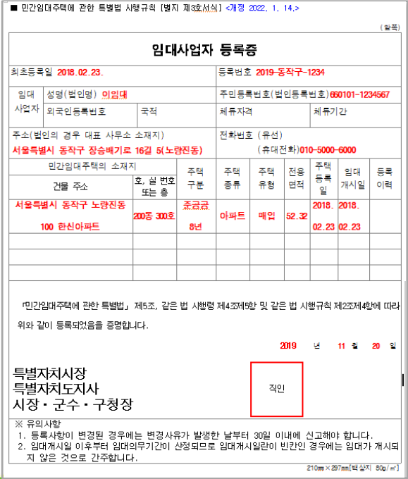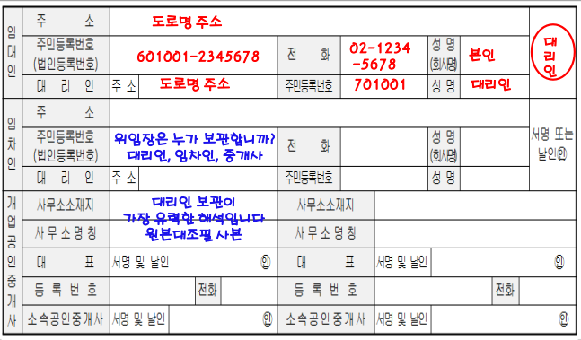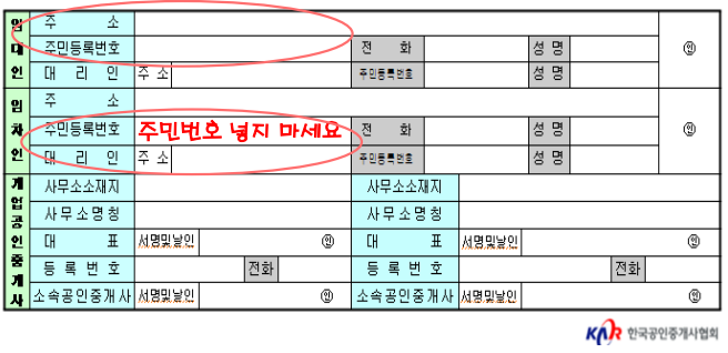 [ 부동산 계약 시 주민번호 사용 가능 : 반드시 기재 X]