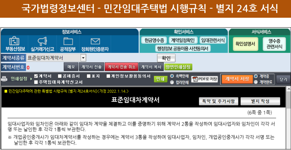 국토교통부령으로 정하는 표준임대차계약서를 사용하여야 한다.