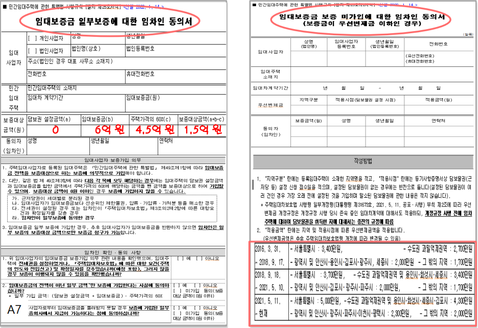 임대보증금 일부보증, 임대보증금 보증 미가입에 대한 임차인 동의서