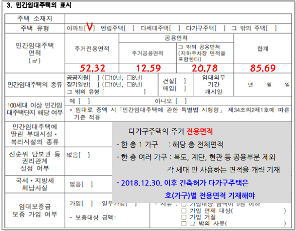 - 2018.12.30. 이후 건축허가 다가구주택은 호(가구)별 전용면적 기재해야