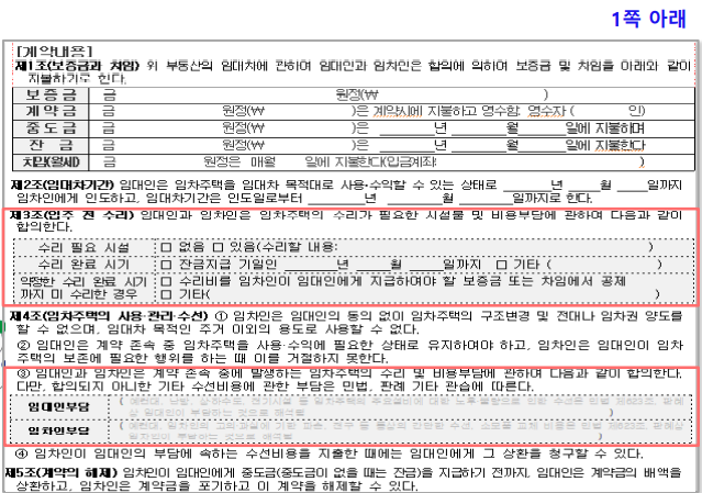 입주 전 수리/ 입주 후 수리 (수리비 부담은 누가 할것인지?)