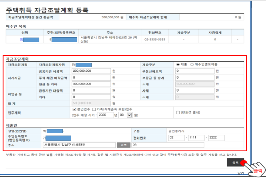 2) 주택취득자금 조달 및 입주계획서 (2020.10.27)