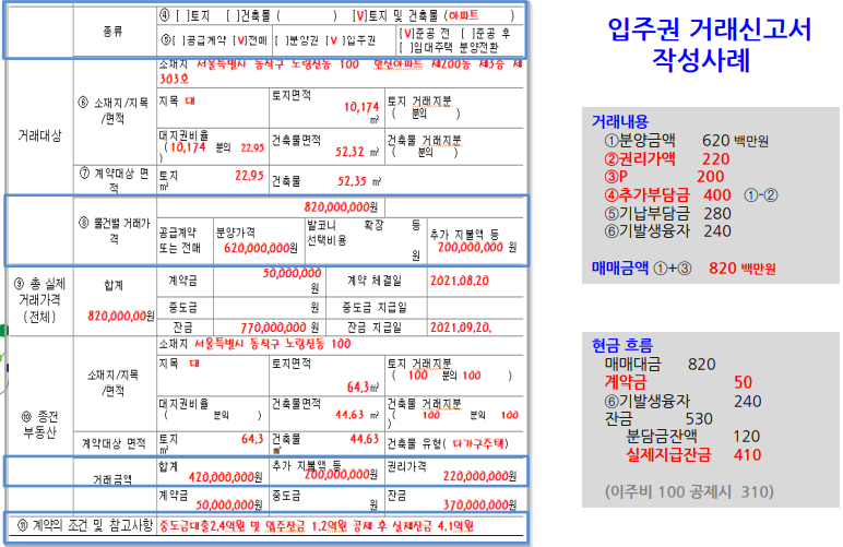 입주권 (= 종전부동산) : 입주권 있을때만 작성