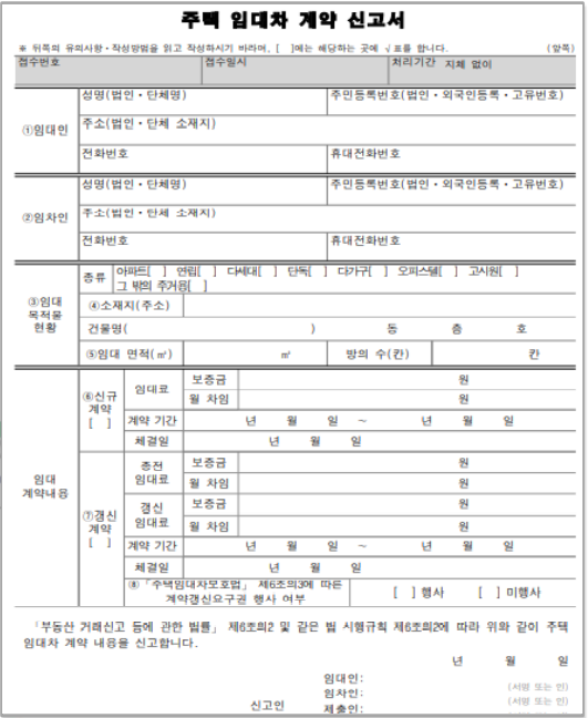 • 임대인+임차인이 계약일부터 30일 내에 공동신고