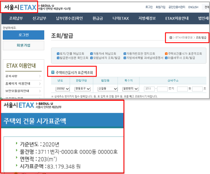 시가표준액 eTax(서울시), weTax(행정안전부)