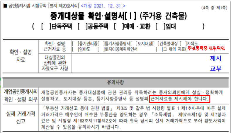 중개대상물 확인·설명서 아파트 매매사례