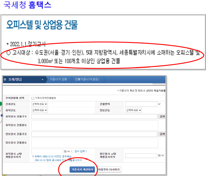 기준시가 계산하기 프로그램 이용