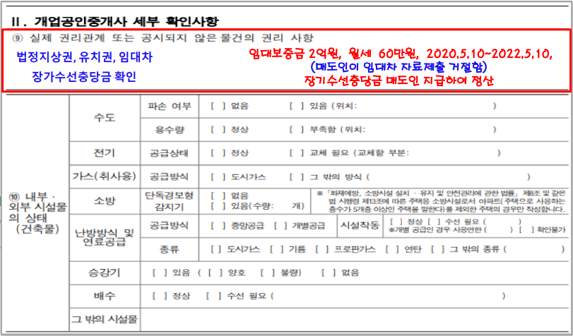 대상물건의 상태에 관한 자료요구사항