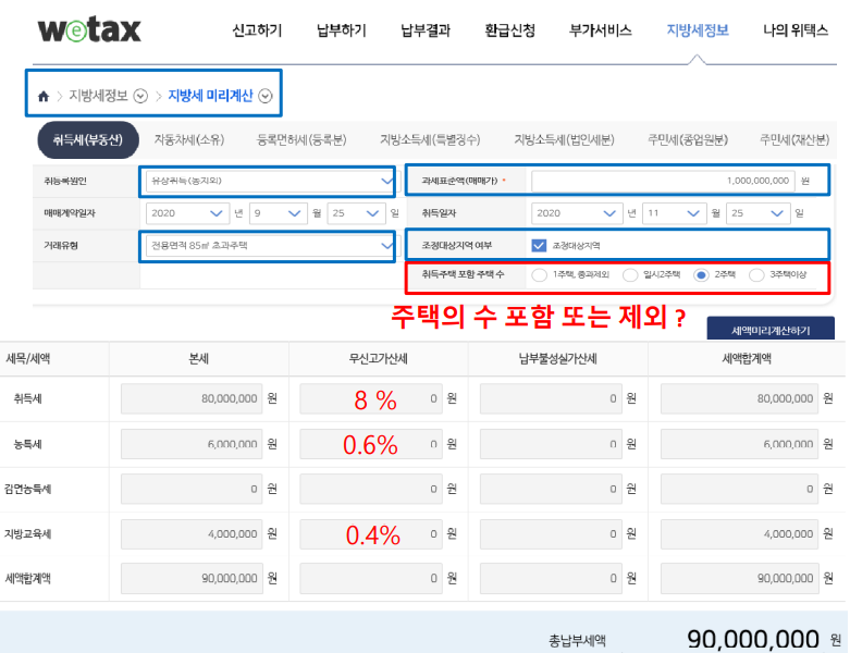 취득세 8%, 농특세 0.6%, 지방교육세 0.4%