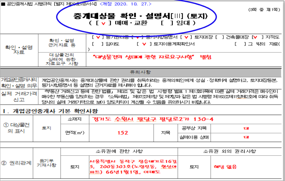 [한국공인중개사협회 실무교육13] 모의현장실습 6 - 중개대상물 확인·설명서- 상가 임대차, 토지 매매사례 본문
