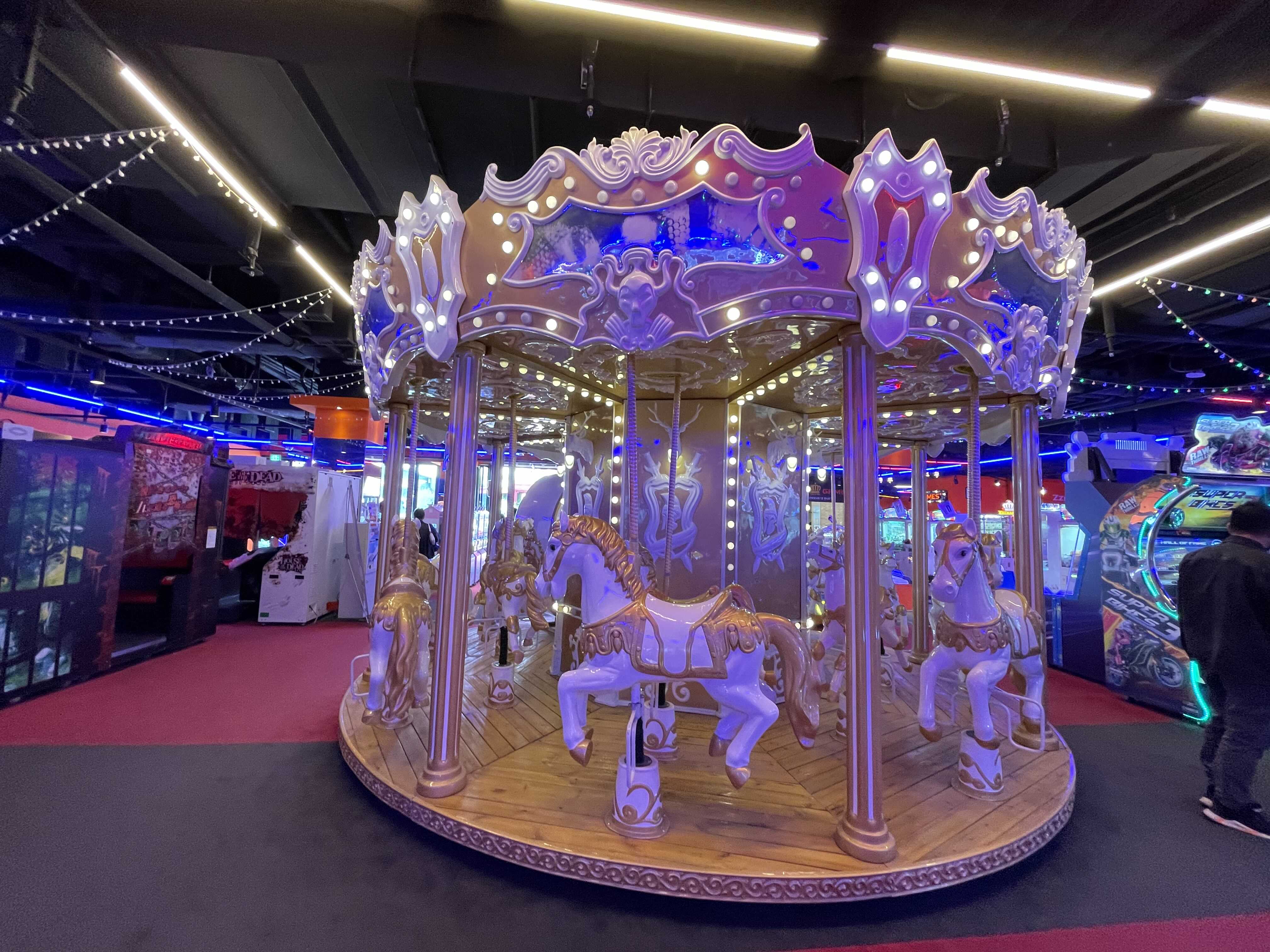 게임장에는 (주차 할인 안됨) 회전목마가 가운데 있는데